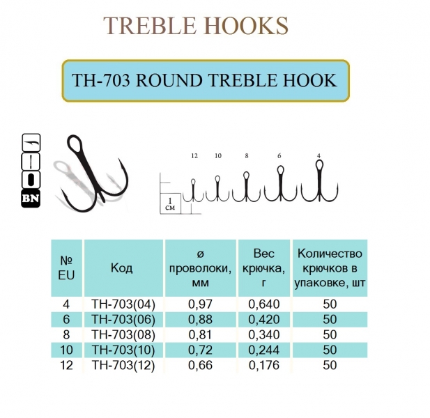 A high durable hook has a needle-shaped point with hollow and forged shank. Ideally befits for the equipment of equalizers and by wobblers size from 3 to 7 sm.